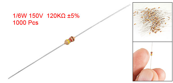 Product Name Carbon Film Resistors Rating Power 1/6W Resistance 120K Ohm Resistance Tolerance ± 5% Withstand Voltage 150V Size(Not Include Leads) 0.18 x 0.36cm / 0.07" x 0.14"(D*L) Leads Dia(Approx) 0.03cm / 0.012" Overall Length(Approx) 4.6cm / 1.8" Color As Picture Shown Weight 59g Package Content 1000(±2%) Pcs of Carbon Film Resistors - Reviews
