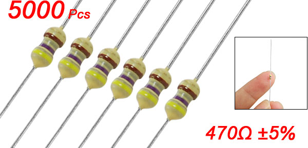 Product Name Carbon Film Resistor Material Type Carbon Film Rated Power 1/6W Resistance Value 470Ω Tolerance ±5% Body Size (Each One) 3 x 1.8mm / 0.118" x 0.07" (L*D) Lead Size (Each End) 28 x 0.2mm / 1.1" x 0.008" (L*D) Total Length (Approx.) 59mm / 2.32" Color As Picture Shown Net Weight 365g Package Content 5000 Pcs (± 2%) x Carbon Film Resistors - Reviews