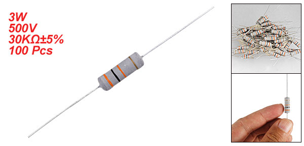 Axial Lead 30K ohm 3W Metal Oxide Film Resistors 500V 100 Pcs