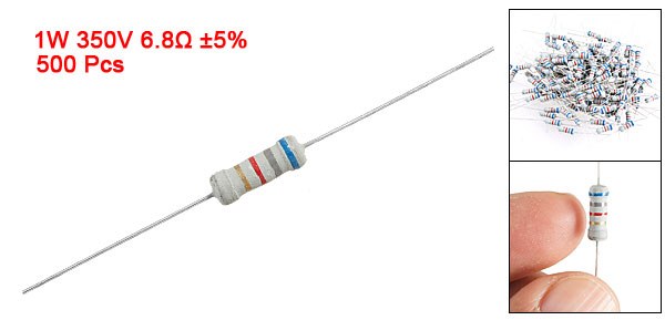 Product Name Resistors Type Metal Oxide Film Power Rating 1W Resistance Tolerance ± 5% Withstand Voltage 350V Resistance 6.8Ω Lead Diameter 0.4mm / 0.015" Each Size (Approx.) 57 x 3.6mm/ 2.244" x 0.142" (L*D) Color As Picture Show Weight 199g Package Content 500(±2%) x Metal Film Resistors - Reviews