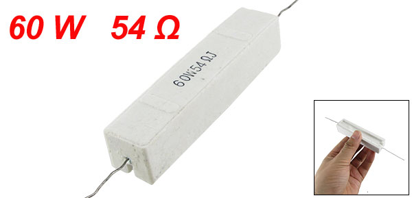 Product Name Cement Resistor Body Material Ceramic, Cement Power 60W Resistance 54Ω Tolerance ±5% Body Size (Approx.) 87 x 19 x 17mm / 3.4" x 0.74" x 0.67" (L*W*H) Lead Diameter (Approx.) 0.8mm / 0.031" Lead Length (Approx.) 32mm / 1.25" Color White Weight 61g Package Content 1 x Cement Resistor - Reviews