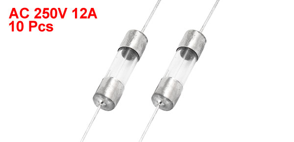 Axial Lead Fast Acting 5mm x 20mm Glass Fuse Tube 250V 12A 10 Pcs