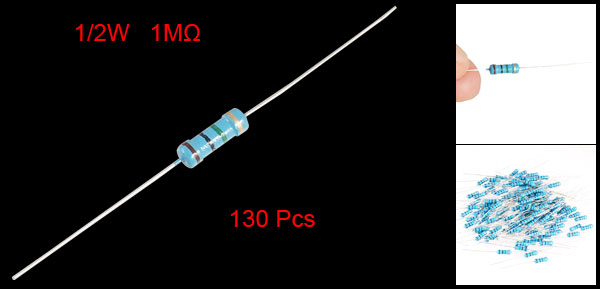Product Name Resistors Type Metal Film Power Rating 1/2W Resistance Tolerance ± 5% Resistance 1MΩ Body Size 8.5 x 3mm / 0.3" x 0.12"(L*D) Lead Diameter 0.3mm / 0.012" Total Length(Approx.) 56mm / 2.2" Color As Picture Show Weight 32g Package Content 130 Pcs x Metal Film Resistors - Reviews