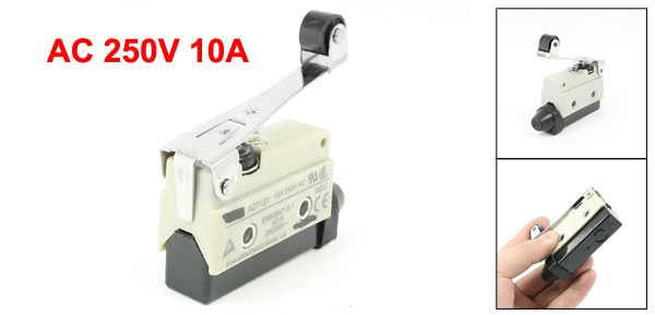 Product Name Limit Switch Model No. AZ7121 Actuator Action Momentary Actuator Type Short Straight Hinge Lever Contact Type 1 NO, 1 NC, 1 Com(SPDT) Terminal Type Screw Terminals Rated Voltage AC 250V, 10A AC-15 AC 125V, 2A Lever Size 6.5 x 0.65cm / 2.6" x 0.25"(L*Tip W) Hole Dia 0.42cm / 0.165" Main Body Size 5.44 x 2.2 x 3.8cm / 2.1" x 0.85" x 1.5"(L*W*H) Overall Height 7cm / 2.7" Material Metal, Plastic Color As Picture Show Net Weight 50g Package Content 1 x Limit Switch - Reviews