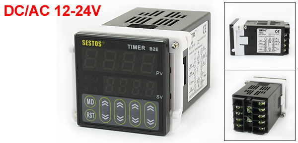 Product Name Microcomputer Timer Switch Model B2E-2R-24 Working voltage DC/AC 12-24V Contact Output AC 250V 3A Timing Accuracy 0.1%±0.05s Control Time Range 0.01S-99H99M for A B Period Environment Temperature -10-55°C Relative Humidity 35-85% Dimension 47 x 47 x 90mm/ 1.8" x 1.8" x 3.5" (L*W*T) Material (External) Plastic Main Color Black Weight 372g Package Content 1 x Microcomputer Timer Switch - Reviews