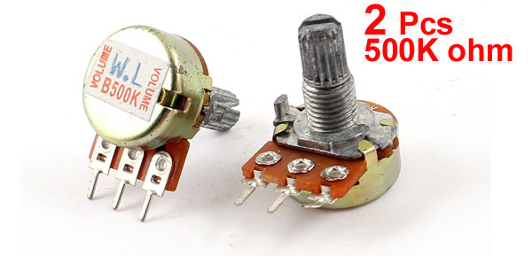 DetailsB500K 500K ohm 3 Pins Split Shaft Rotary Linear Dual Taper Potentiometer 2pcs  Product Name Potentiometer Mode B500K Resistance Value 500K ohm Adjustment Type Top Adjustment Type Linear Dual(Type B) Features Knurled Shaft Shaft Diameter 6mm / 0.24" Shaft Length 9mm / 0.35" Mounting Thread Diameter 7mm / 0.28" Base Height 9mm / 0.35" Base Diameter 17mm / 0.7" Material Metal, Electronic Parts Weight 12g Package 2PCS x Potentiometer