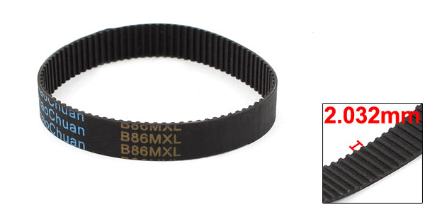 Product Name Timing Belt Model 68.5MXL(B86MXL) Number of Teeth 86 Pitch 2.032mm / 0.08" Tooth Height 0.51mm / 0.02" Tooth Width 1.14mm / 0.04" Belt Width 10mm / 0.4" Belt Girth 174mm/ 0.57Ft/ 6.8" Total Height 1.14mm/0.04" Belt Material Neoprene (Synthetic Rubber) Core Wire Material Glass Fiber Color Black Net Weight 3g Package Content 1 x Timing Belt - Reviews