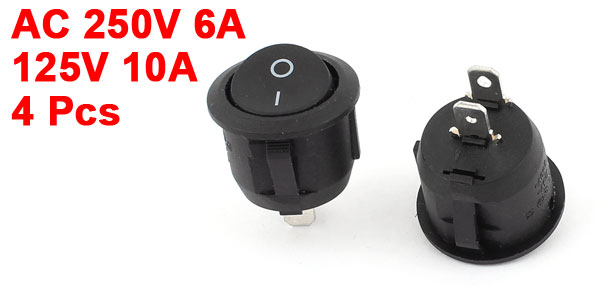 Balck SPST ON-OFF 2 Position 2pin Round Rocker Switch 4Pcs