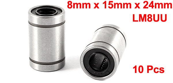 Product Name Linear Motion Ball Bearing Model LM8UU Material Carbon Steel, Rubber Inner Diameter 8mm / 0.31" Outer Diameter 15mm / 0.59" Length 24mm / 0.94" Color Silver Tone Weight 139g Package Content 10 x Linear Motion Ball Bearing - Reviews
