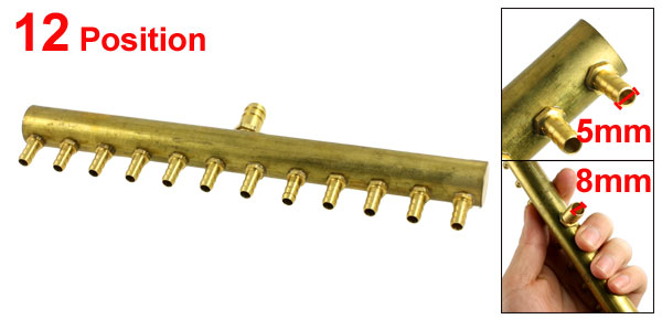 Product Name Air Hose Fitting Design 8 Position Material Brass Color Gold Tone Fit Hose Inner Diameter 5mm/1/5'' 8mm/5/16'' Ocerall Size 188 x 43 x 16mm/7.4'' x 1.7'' x 0.6'' (L*W*D) Weight 53g Package Content 1 x Air Hose Fitting - Reviews