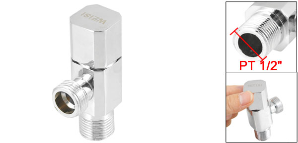 Product Name Angle Stop Valve Material Metal Male Thread Diameter PT 1/2" Overall Size (Approx.) 4.2 x 2.8 x 7.5cm / 1.6" x 1.1" x 3" (L*W*H) Color Silver Tone Weight 169g Package Content 1 x Angle Stop Valve - Reviews