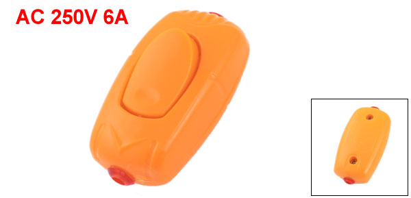 Product Name In-Line Cord Switch Rated Power 6A, AC 250V Material Plastic Size 6.2 x 3.3 x 2.5cm / 2.4" x 1.3" x 1"(L*W*T) Main Color Orange Weight 21g Package Content 1 x In-Line Cord Switch - Reviews