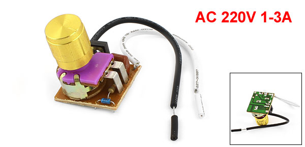 Product Name Dimmer Switch Rating AC220V 1-3A Knob Diameter 14mm/ 0.55" Overall Size 27 x 23 x 32mm/ 1.1" x 0.91" x 1.3"(L*W*T) Cable Length 9cm/ 3.5" Materials Plastic, Metal, Electric Parts Main Color Gold Tone Weight 13g Package Content 1 x Dimmer Switch - Reviews
