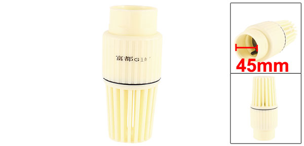 Product Name PVC Foot Valve Color Beige Material PVC Connector External Dia 56mm / 2.2" Female Thread Size 45mm/1 1/2"PT Total Size 15.5 x 7cm / 6.1" x 2.8" (L*Max Diameter) Net Weight 149g Package Content 1 x PVC Foot Valve - Reviews