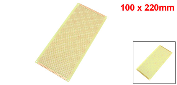 Product Name Universal PCB Board Hole Dia(Approx) 1mm / 0.039" Hole Pitch(Approx) 2.54mm / 0.1" Size(Approx) 100 x 220mm /3.9" x 8.7"(W*L) Thickness(Approx) 1.2mm / 0.047" Material FR-4, Copper Color Copper Tone, Beige Net Weight 45g Package Content 1 Pcs x Universal PCB Board - Reviews