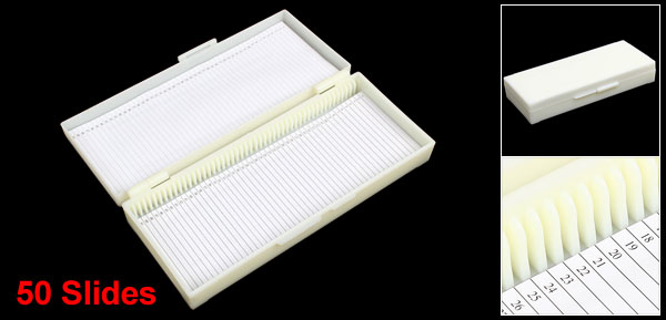 Product Name 50 Slide Microscope Box Material Plastic Main Color Beige Total Size 20 x 8 X 3cm/ 7.9" x 3.1" x 1.2"(L*W*H) Net Weight 83g Package Content