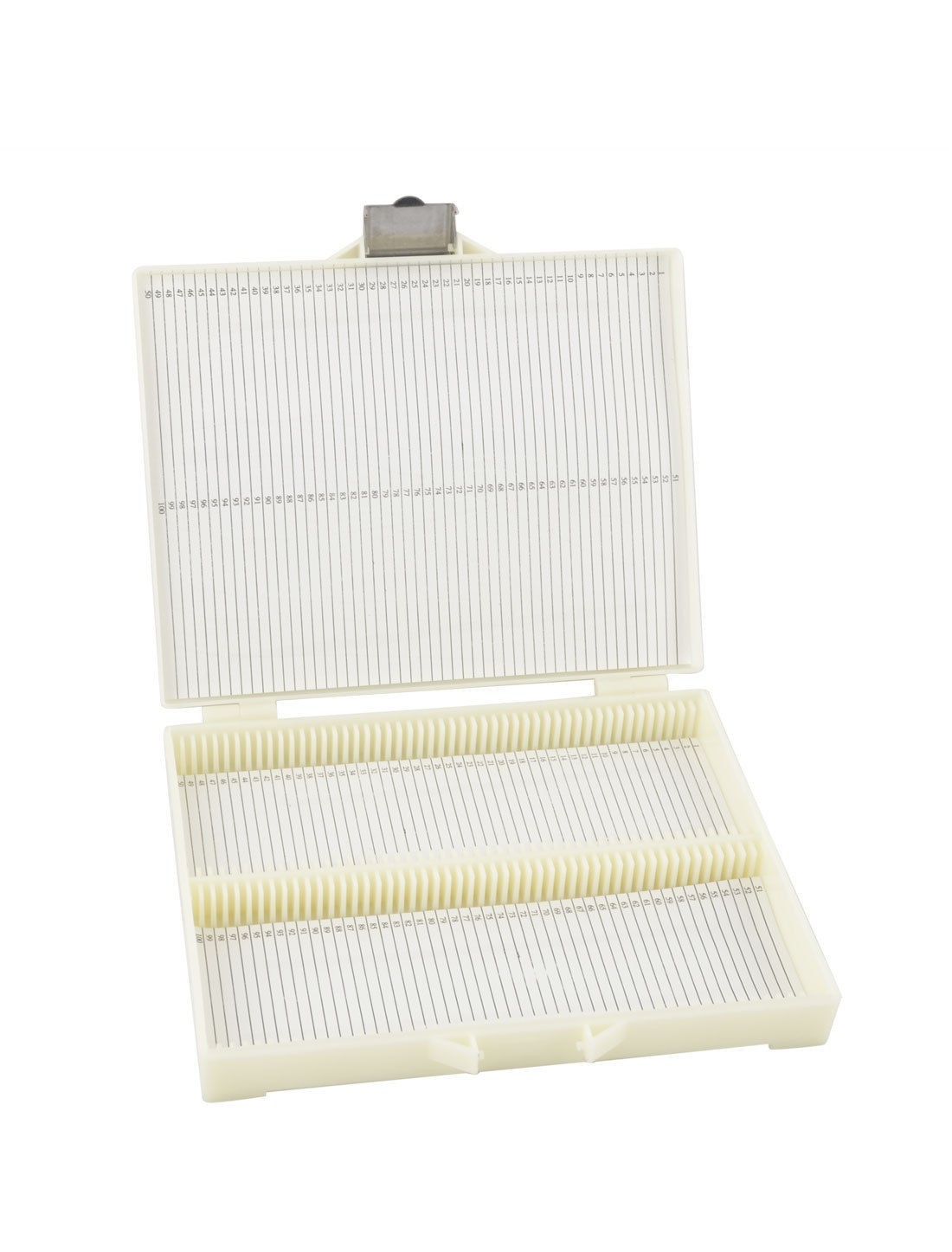 Product Name Microscope Slide Box Color Beige Material Plastic,Metal Can Hold Slide Number 50 Pcs Slot Number 50 Fit Slide Size 7.8 x 2.7cm/3" x 1"(L*W) Total Size 21 x 17 x 3.5cm/8.26" x 6.69" x 1.38"(L*W*T) Weight 114g Package 1 x Microscope Slide Box - Reviews
