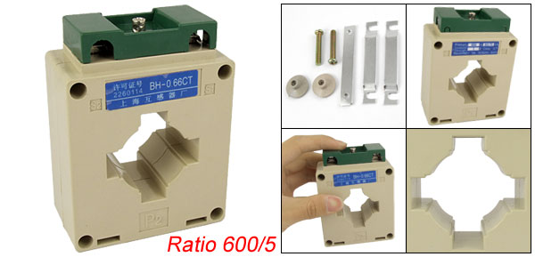 Product Name Current Transformer Model Number BH-0.66CT Rated Current Ratio 600/5 Accuracy Class 0.5 Conductor Through 1T Rated Load 5/3.75VA Primary Current 600A Secondary Current 5A Frequency 50/60Hz Maximum Rated Voltage 660V Perforation Size 30.5mm(Diameter), 42 x 11mm Overall Size 99 x 75 x 40mm/3.9" x 3" x 1.6"(L*W*T) Material Plastic, Electronic Parts Color As Picture Shown Weight 329g Package Content 1 x Current Transformer