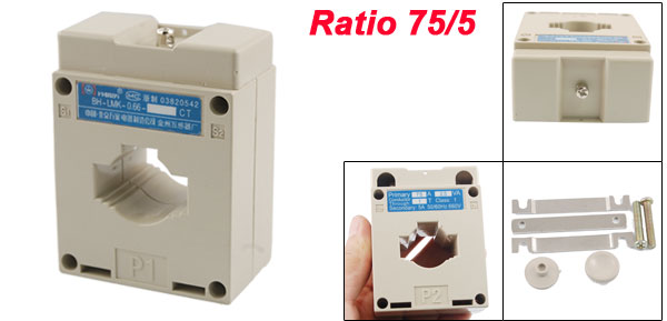 Item Name Current Transformer Model Number BH-0.66 Rated Current Ratio 75/5 Accuracy Class 1 Rated Voltage 0.66KV Working Frenquency 50Hz - 60Hz Conductor Through 1T Primary Current 75A Secondary Current 5A 50/60Hz 660V Total Size 8 x 6 x 3.7cm / 3.1" x 2.4" x 1.4"(L * W * T) Case Material Plastic Color Gray Weight 221g Package Content 1 x Current Transformer Installing Kits - Reviews