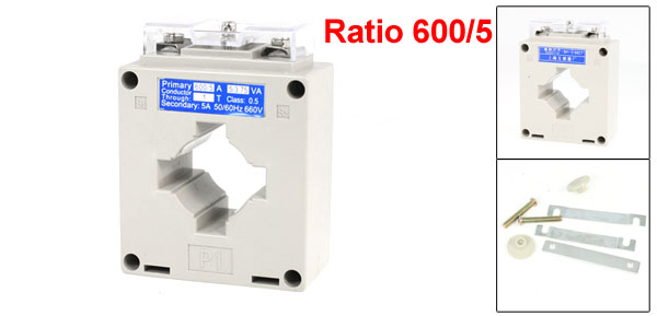 Item Name Current Transformer Model Number BH-0.66CT Rated Current Ratio 600/5 Accuracy Class 0.5 Rated Voltage 0.66KV Rated Load 5/3.75VA Rated Frequency 50/60Hz Conductor Through 1T Primary Current 600A Secondary Current 5A Total Size 98 x 75 x 40mm / 3.8" x 2.9" x 1.5"(L * W * T) Case Material Plastic Color Gray Weight 300g Package Content 1 x Current Transformer
