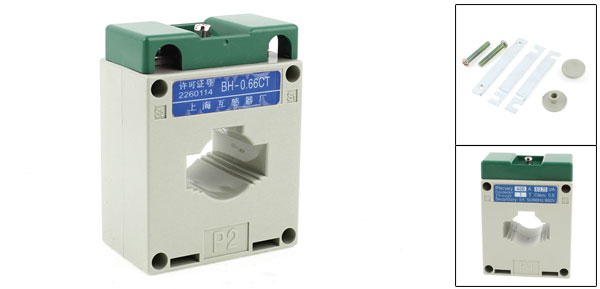 Item Name Current Transformer Model Number BH-0.66CT Rated Current Ratio 400/5 Accuracy Class 0.5 Rated Voltage 0.66KV Working Frenquency 50Hz - 60Hz Conductor Through 1T Primary Current 400A Secondary Current 5A 50/60Hz 660V Power 5/3.75VA Total Size 6 x 3.7 x 7.8cm / 2.4" x 1.5" x 3.1"(L * W * H) Case Material Metal Color Gray,Green Weight 242g Package Content 1 x Current Transformer