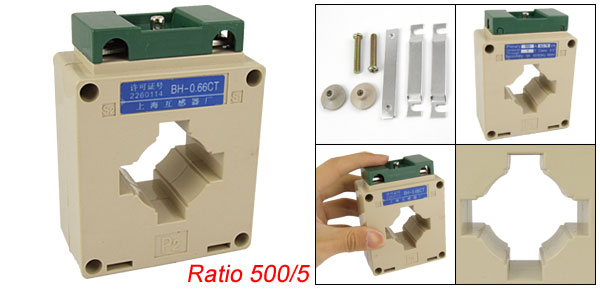 Product Name Current Transformer Model Number BH-0.66CT Rated Current Ratio 500/5 Accuracy Class 0.5 Conductor Through 1T Rated Load 5/3.75VA Primary Current 500A Secondary Current 5A Frequency 50/60Hz Maximum Rated Voltage 660V Perforation Size 30.5mm(Diameter), 42 x 11mm Overall Size 99 x 75 x 40mm/3.9" x 3" x 1.6"(L*W*T) Material Plastic, Electronic Parts Color As Picture Shown Weight 317g Package Content 1 x Current Transformer