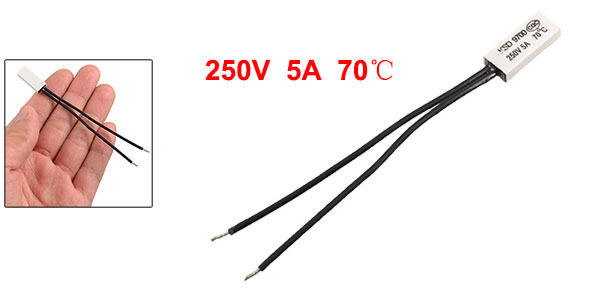 Product Name Temperature Control Switch Model.No KSD9700 Material Plastic Contact NC(Normal Close) Rated Voltage 250V Current 5A Max Rated Disconnection Temperature 70C Color Black, White Cable Length 8cm/ 3.1" Head Dimension 20 x 8 x 4mm/0.78" x 0.31" x 0.16"(L*W*T) Net Weight 3g Package Content 1 x Temperature Control Switch - Reviews