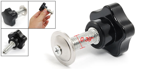 Product Name Clamping Knob Type Screw On Head Diameter 40mm / 1.57" Thread Length 30mm / 1.18" Thread Diameter 10mm / 0.39" Total Height 50mm / 1.96" Material Metal & Plastic Color Silver Tone & Black Weight 51g Package Content 1 x Clamping Knob 1 x Scew 1 x Nut - Reviews