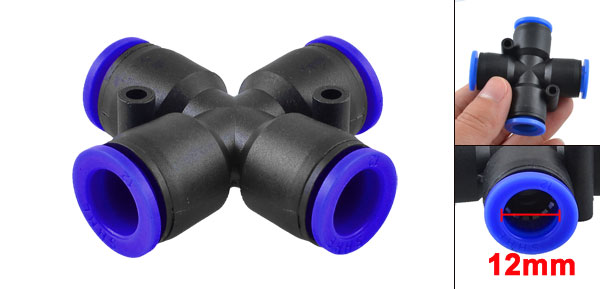 Black 12mm 4 Way Splitter Push in Connector Pneumatic Fittings