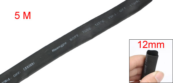 Black 12mm Diameter Polyolefin 2:1 Halogen-Free Heat Shrink Tubing 5M 16.5Ft