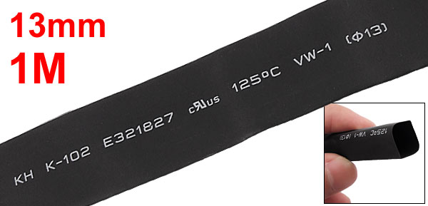 Black 13mm Diameter Polyolefin 2:1 Halogen-Free Heat Shrink Tubing 1M 3.3Ft