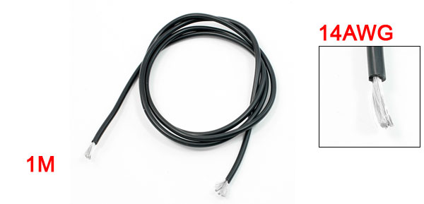 Black 14AWG Gauge Copper Core Flexible Silicone Wire Cable 1M Length
