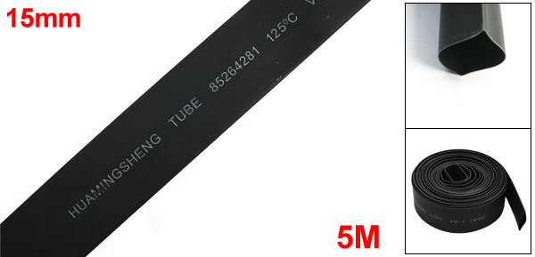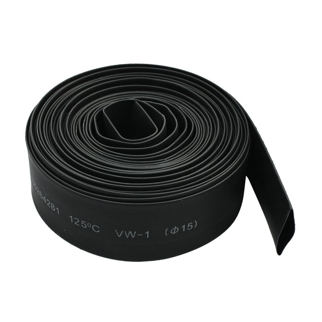 Black 15mm Diameter Polyolefin 2:1 Halogen-Free Heat Shrink Tubing 5M 16.5Ft
