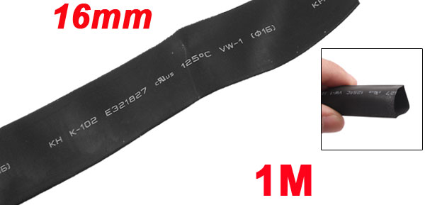 Black 16mm Dia Shrinkable Tube Heat Shrink Tubing Wire Cable Sleeve 1M 3.3Ft