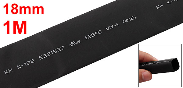 Black 18mm Diameter Polyolefin 2:1 Halogen-Free Heat Shrink Tubing 1M 3.3Feet
