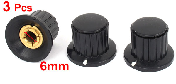 Black 19mm Top Dia 6mm Shaft Potentiometer Volume Control Knobs 3 Pcs
