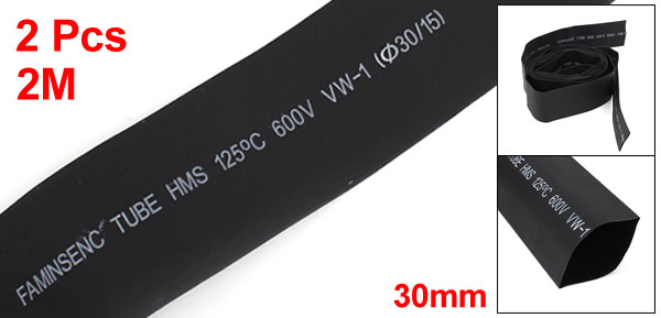 Black 2 Meter 30mm Dia Ratio 2:1 Polyolefin Heat Shrinking Shrinkable Tube 2PCS