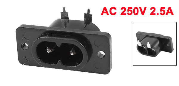 Black 2-Pin IEC320 C8 Inlet Plug Power Socket Connector AC 250V 2.5A