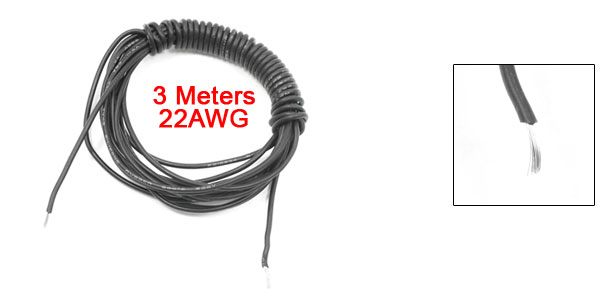 Black 22AWG Model 2.26mm Outer Diameter Electrical Silicone Wire 3Meter