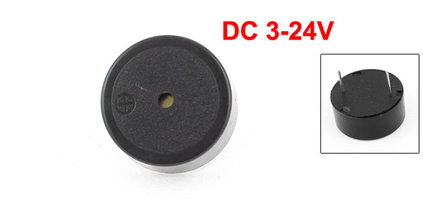 Product Name Piezo Buzzer Sounder Voltage DC 3-24V Type Continuous Sound Total Size(Pin Not Included) 22 x 10mm/ 0.9" x 0.4"(D*H) Pin Distance 15mm/ 0.6" Pin Size 0.8 x 8mm/ 0.03" x 0.32" Materials Plastic, Metal Main Color Balck Total Weight 5g Package Content 1 x Piezo Buzzer Sounder