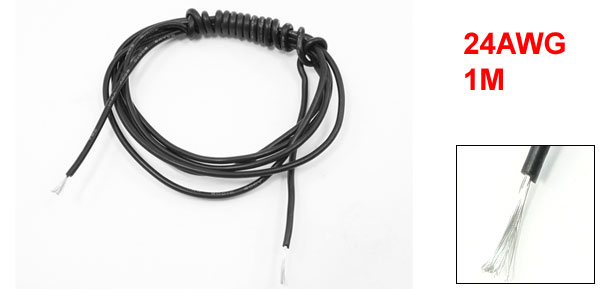 Product Name Silicone Wire Wire Type 24AWG Withstand Temperature 200°C Wire Length 100cm /3.3 Ft Cable Outer Dia 2.11mm/ 0.08" Core Total Dia 0.61mm/ 0.02" Material Glass Fibre, Silicone Resin, Copper External Color Black Weight 7g Package 1 Pcs x Silicone Wire - Reviews