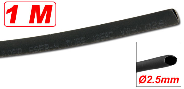 Black 2.5mm Diameter Polyolefin 2:1 Halogen-Free Heat Shrink Tubing 1M 3.3Ft