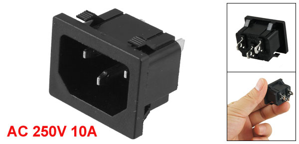 Black 3 Pin Terminals IEC320 C14 Inlet Plug Power Socket AC 250V 10A
