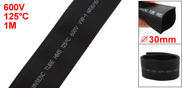Black 30mm Dia. 2:1 Heat Shrink Tubing Tube Wire Wrap Cable Sleeve 1M 3.3Feet