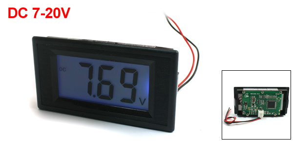 Black 4-Bit Digital LCD Display Rectangle Panel Voltmeter Meter DC7-20V