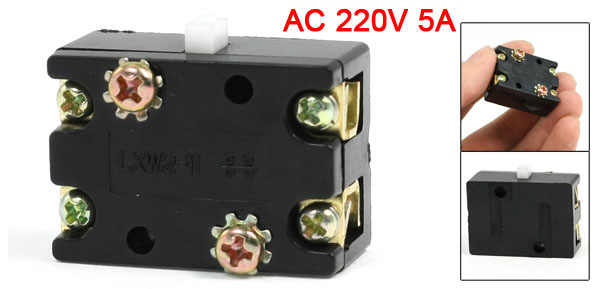 Product Name Limit Switch Model No. DXW2-11 Rated Voltage AC 220V Rated Current 5A Contact Type 2NO+2NC Actuator Spring Plunger Mounting Hole Diameter 3.3mm/0.13" Overall Size(Approx.) 30 x 22 x 27mm./1.1" x 0.86" x 1.1" (L*W*T) Material Plastic, Metal Color Black Weight 16g Package Content 1 x Limit Switch - Reviews