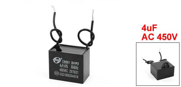 Black 4uF Capacity AC 450V Fan Motor Running Rectangle Capacitor CBB61