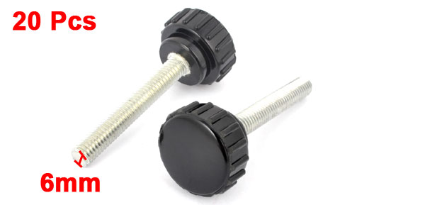 Black 6mm Diameter Thread Round Head Screw On Clamping Knob 20 Pcs