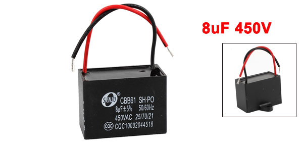 Black 8uF Capacity AC 450V Fan Motor Running Rectangle Capacitor CBB61