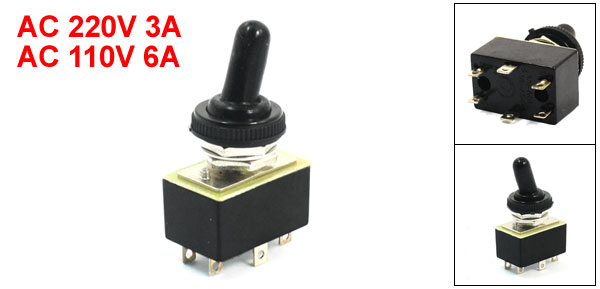 Black AC 220V 3A DPDT 2 Position Self Locking Toggle Switch w Rocker Cover